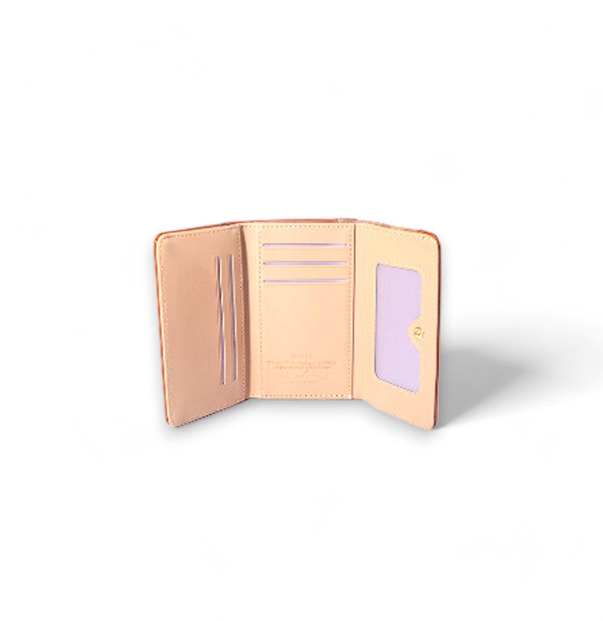 printed black leather that is crafted for durability and elegance. - The flap and the magnetic closure for secure yet chic access. - Organized Essentials with multiple compartments for cards, cash, and coins. - Compact and fits effortlessly into any handbag or clutch. - Perfect for casual and formal outings. - Expert Craftsmanship as it is designed for a luxurious finish.